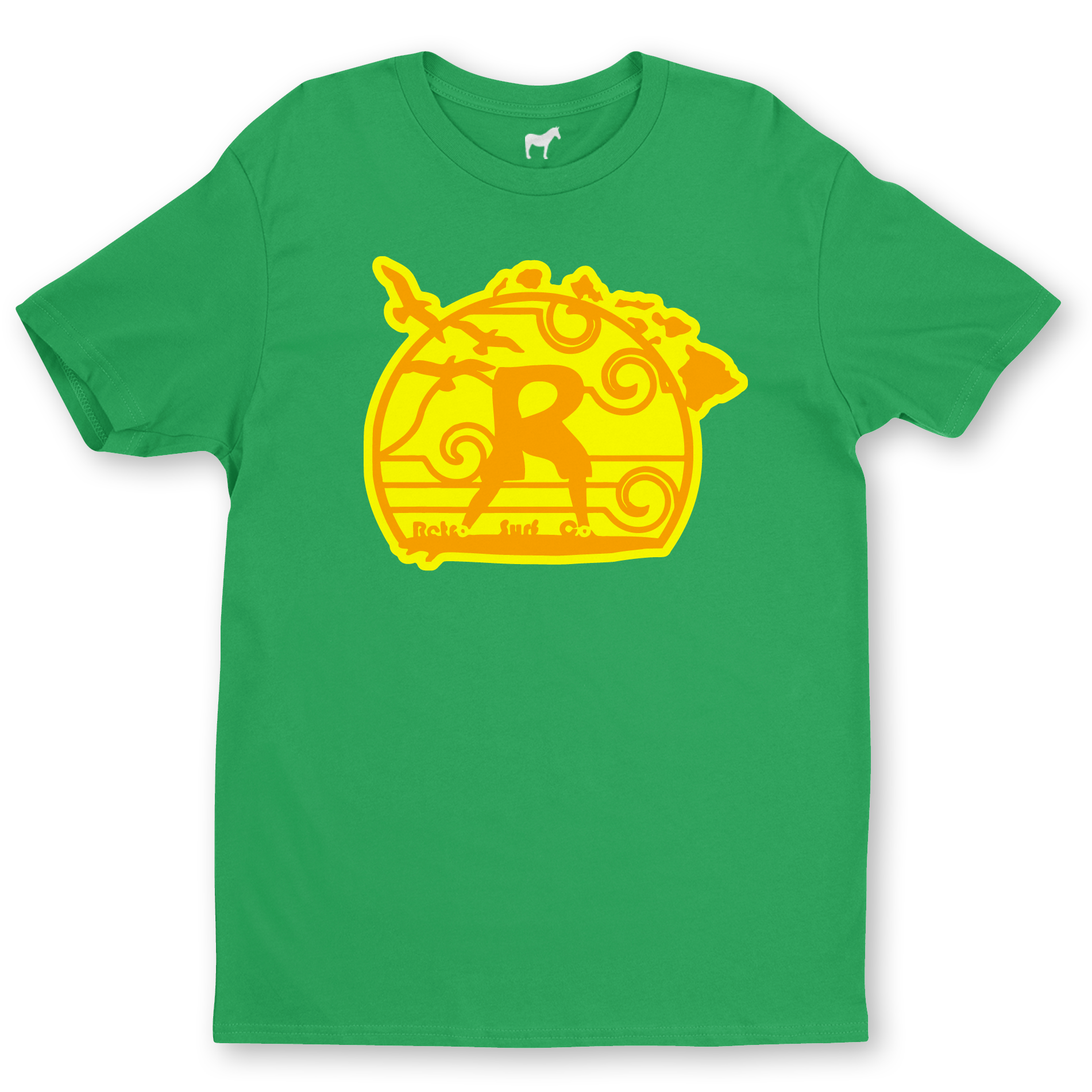 Green tshirt with Retro orange logo with yellow background