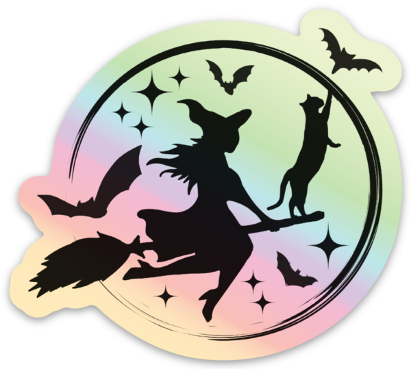 Witch, Cat, Bats | Holographic Sticker