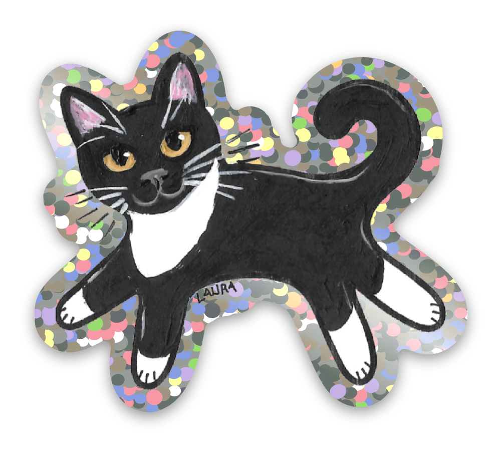 Tuxedo Cat Dark Nose Glitter Sticker