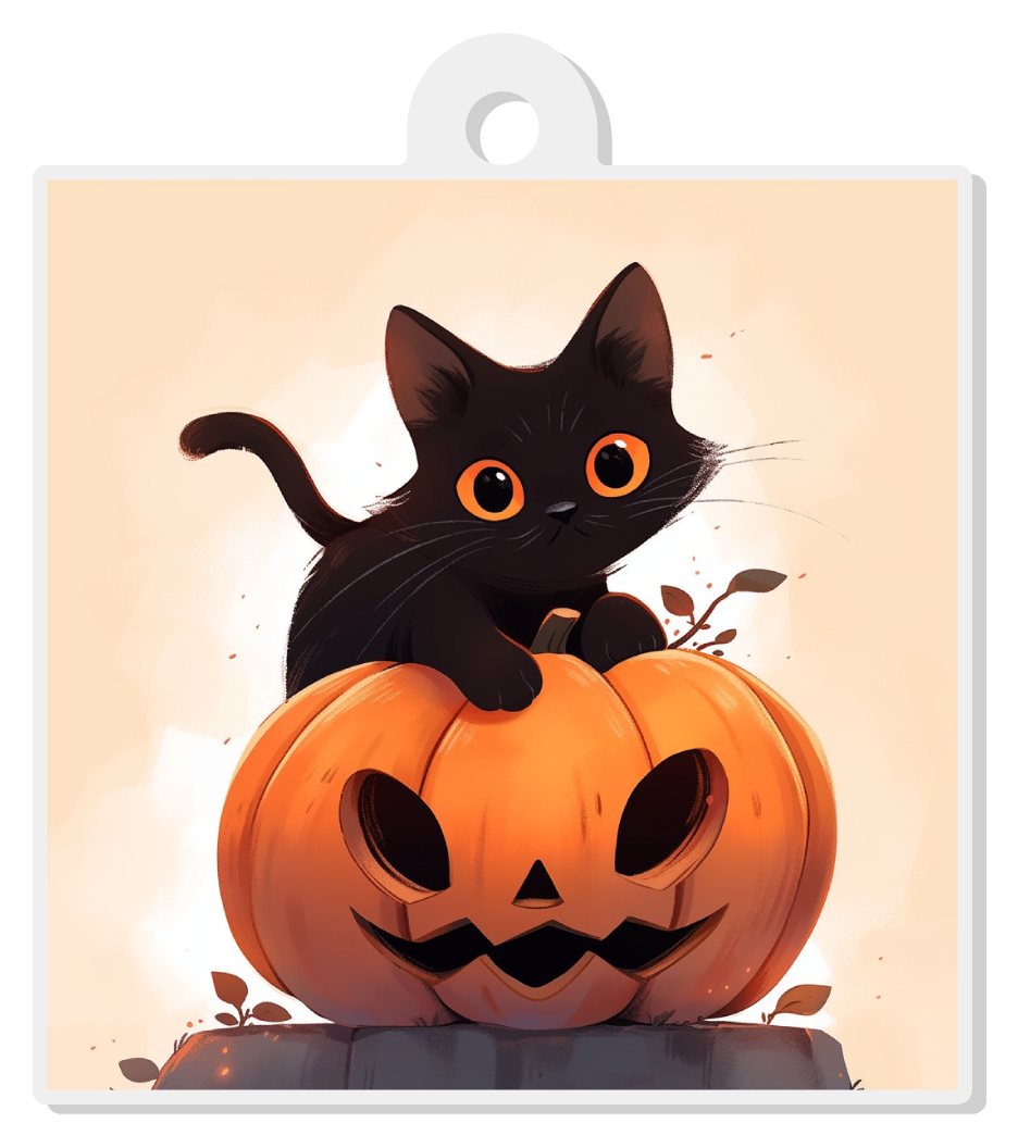 Black cat and pumpkin keychain